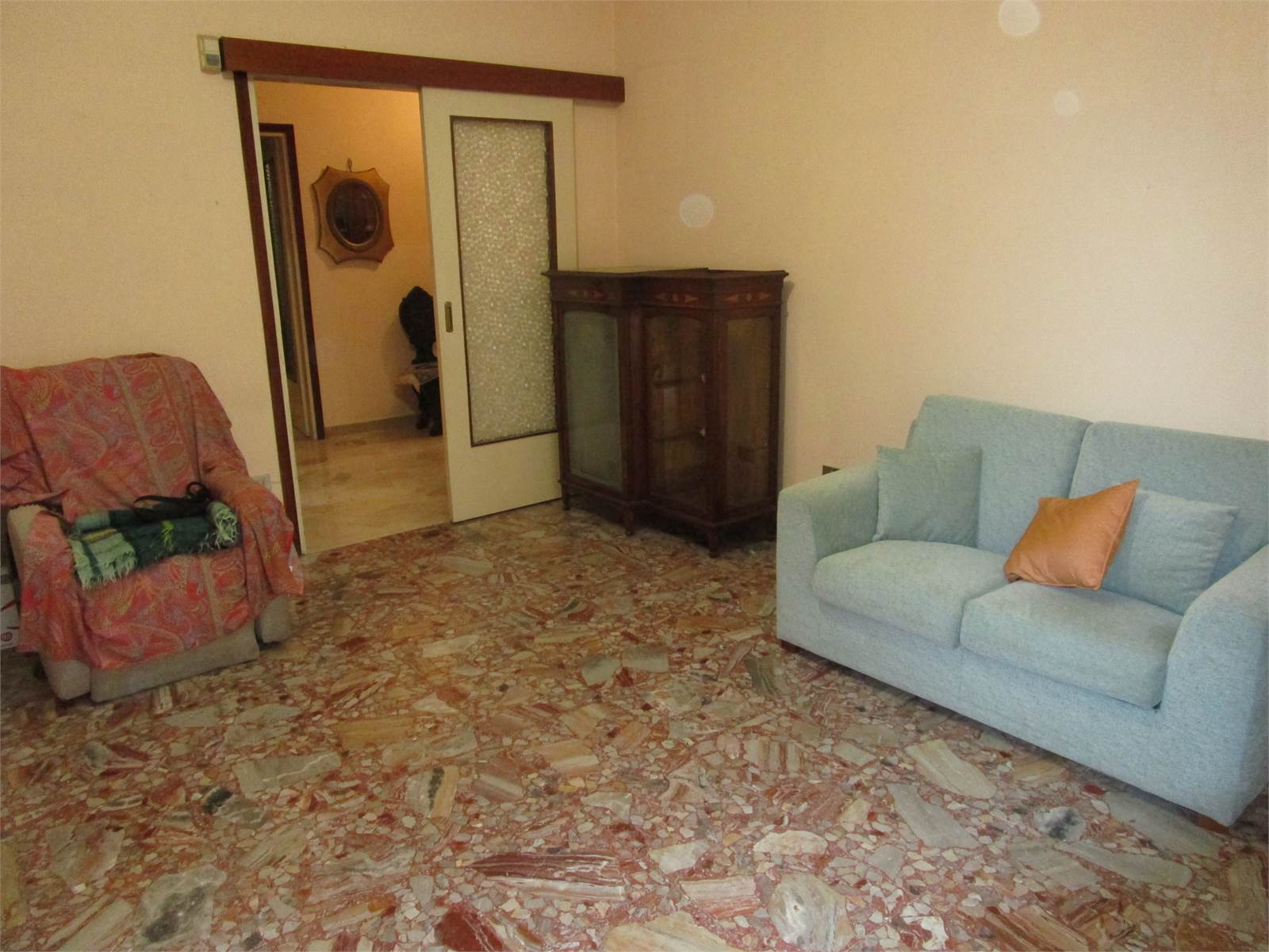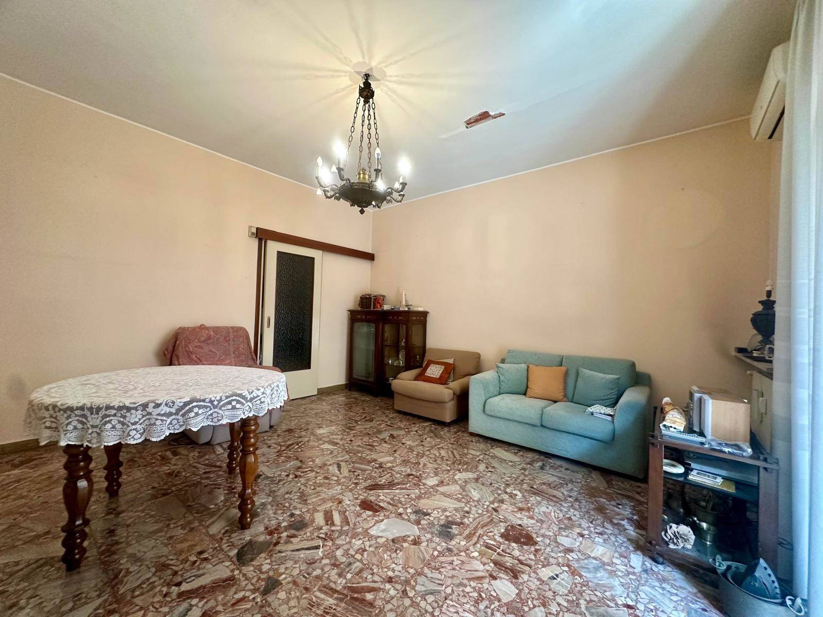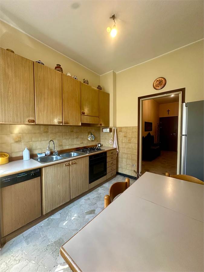 Zona stazione, in stabile civile degli anni '60 proponiamo trilocale di 102 mq composto da ingresso, ampio soggiorno con balcone, cucina abitabile, camera matrimoniale con balcone, cameretta con balcone, bagno, cantina e box di 19 mq. L'appartamento si trova al 1' piano ed è molto luminoso grazie alla tripla esposizione. Si presenta in buone condizioni di manutenzione interna. La pavimentazione è in marmo sia nella zona giorno che nella seconda camera, mentre troviamo il parquet nella camera matrimoniale. I serramenti sono in legno con doppi vetri e zanzariere. Sono presenti 3 condizionatori con split nelle 3 stanze principali e 3 motori. L'impiantistica sia elettrica che idraulica è invece allo stato originale. Il riscaldamento è centralizzato con termovalvole. L'immobile è LIBERO SUBITO. Euro 128.000,00 euro.